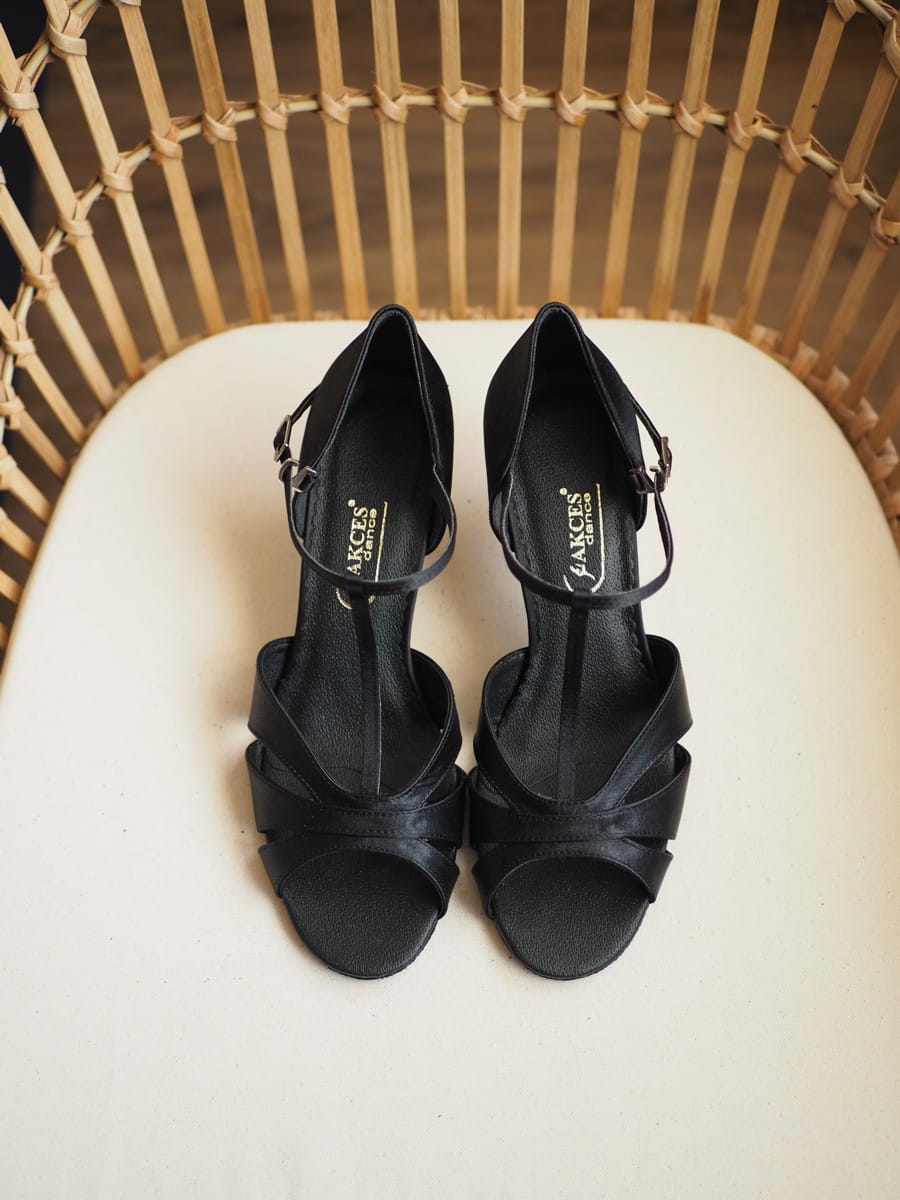Women's Latin Dance Shoes with Stability Correction– Black Satin | Elegant, Lightweight & Comfortable