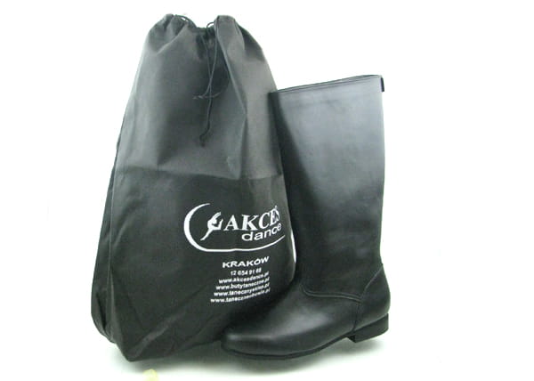 A durable bag designed for storing and transporting tall folk dance shoes. Made from sturdy material, it protects shoes from dirt and damage while making them easy to carry.