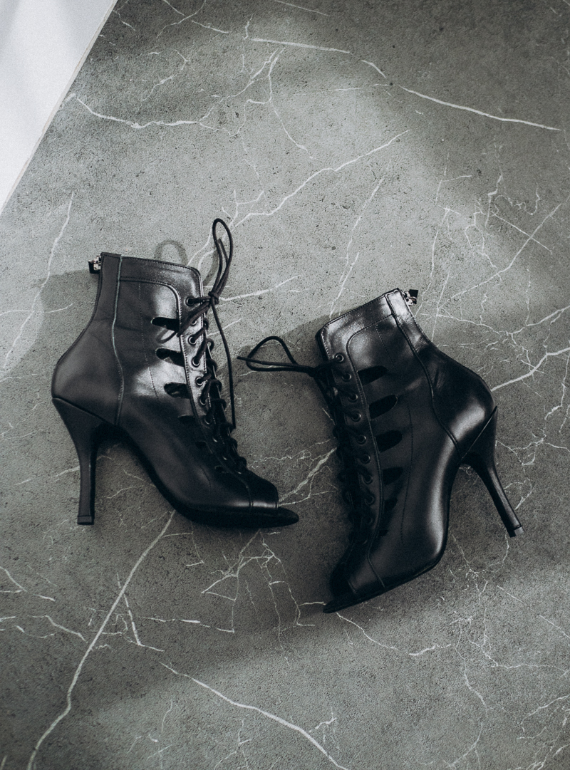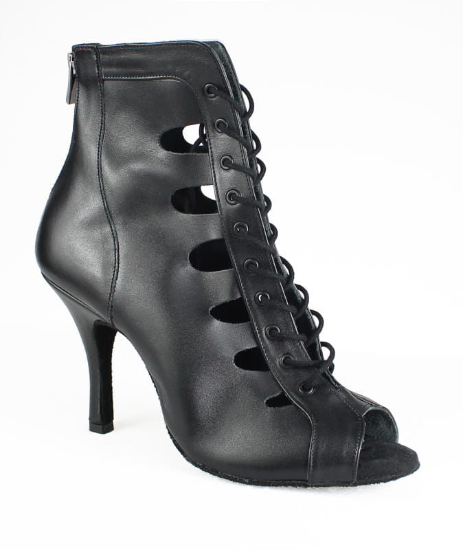 Made from black genuine leather, these high heels stand out not only for their modern design but also for their advanced dance shoe construction, which offers maximum stability and comfort during every performance.