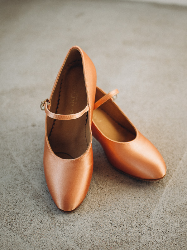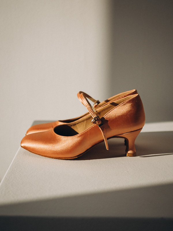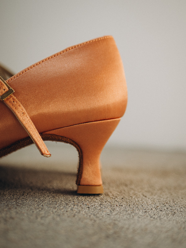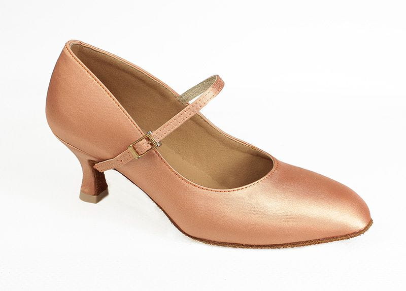 Refined English satin in a deep nude tone gives these shoes a delicate, elegant appearance that matches most ballroom costumes.