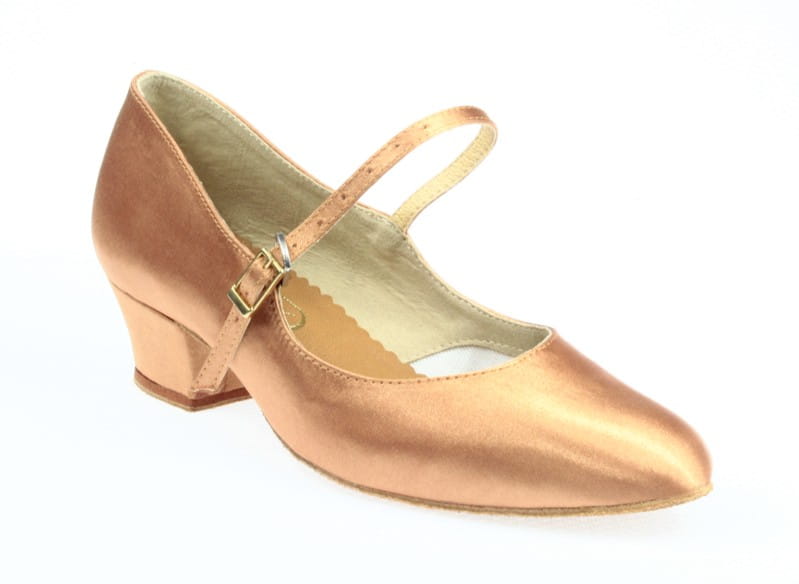 Elegant and comfortable dance shoes for girls designed especially for ballroom dances. Made from high-quality dark nude satin, they look stunning on the dance floor and complement any dance outfit.