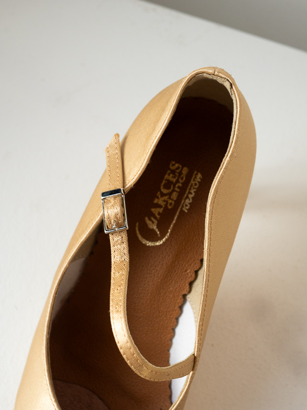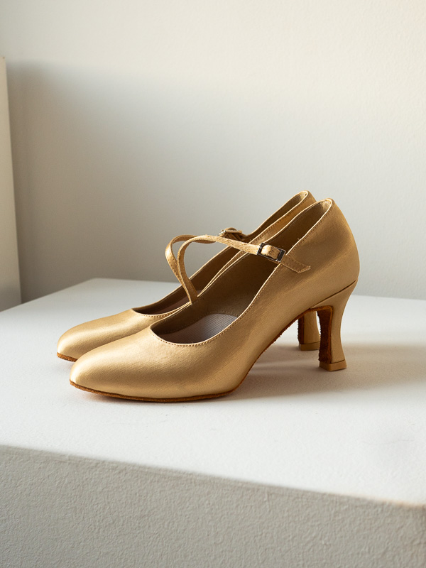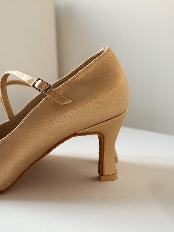 The delicate satin in a classic champagne shade adds elegance and subtlety, matching beautifully with a wide range of ballroom dance outfits.