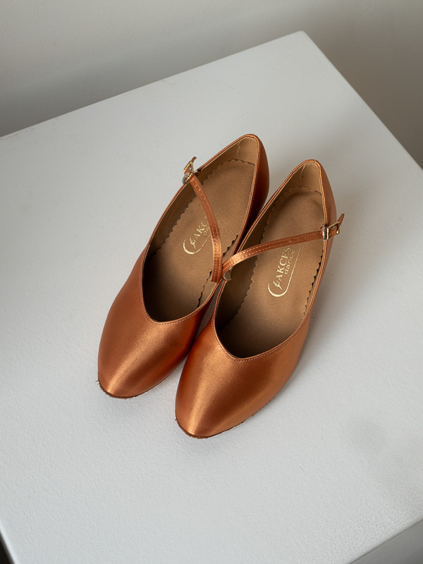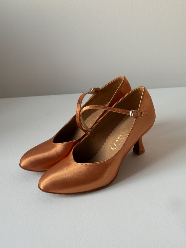 Delicate and classic English satin gives the shoes a subtle, elegant appearance and complements most ballroom dance outfits.