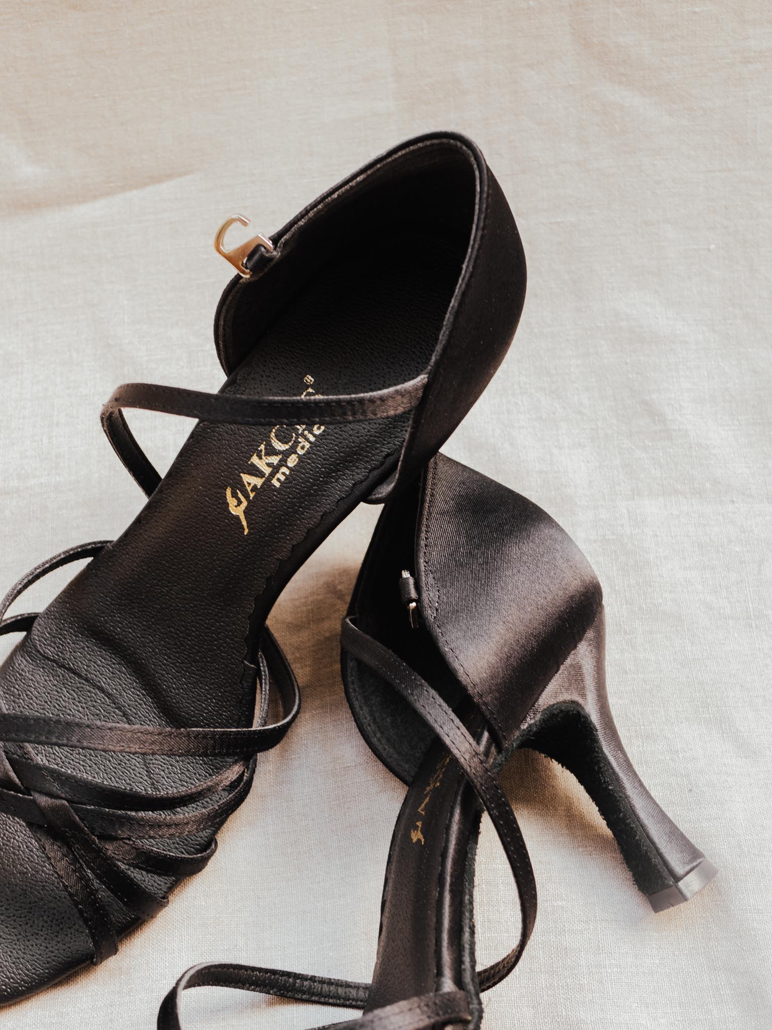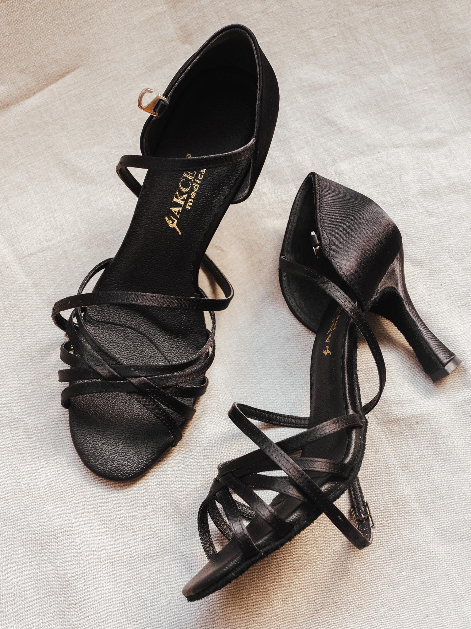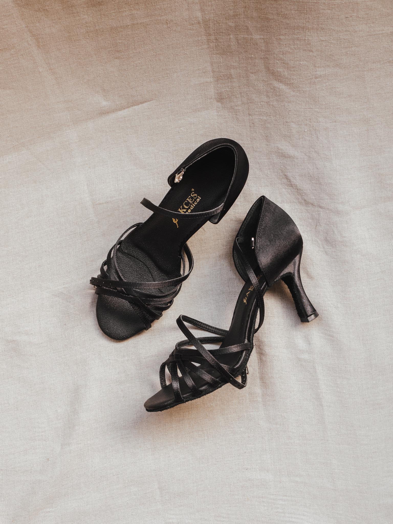 Women's Latin Dance Shoes with Stability Correction – Black English Satin | Elegant, Lightweight & Comfortable
