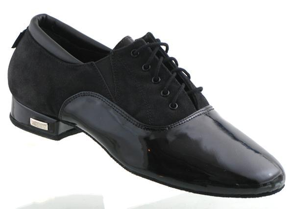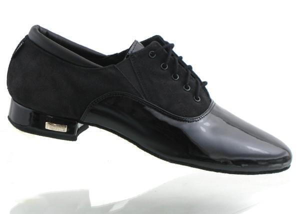 Professional men’s ballroom shoes designed for standard dances. Crafted from soft, high-quality black suede leather with black patent leather accents, this model is perfect for both training and competition performances.