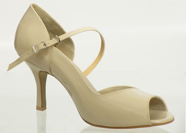 These stylish bridal dance sandals with a closed outer side are the perfect combination of classic elegance and practical functionality. The asymmetrical cut of the upper and a delicate ankle strap beautifully highlight the foot and visually elongate the leg, adding a graceful, feminine silhouette.