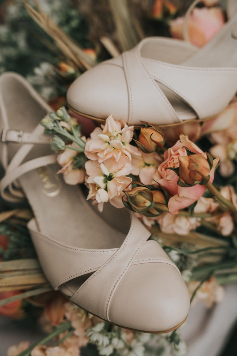 These elegant closed-toe bridal dance shoes are crafted from exceptionally soft beige natural leather, offering a perfect fit that gently hugs the foot. The classic design blends timeless elegance with the comfort and freedom of movement typical of high-quality dance shoes – making them ideal for wearing all night long.