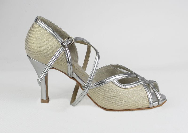 These exclusive bridal dance shoes are crafted from shimmering gold glitter fabric and adorned with refined silver details, creating a stunning, jewelry-like effect that beautifully complements any bridal outfit.