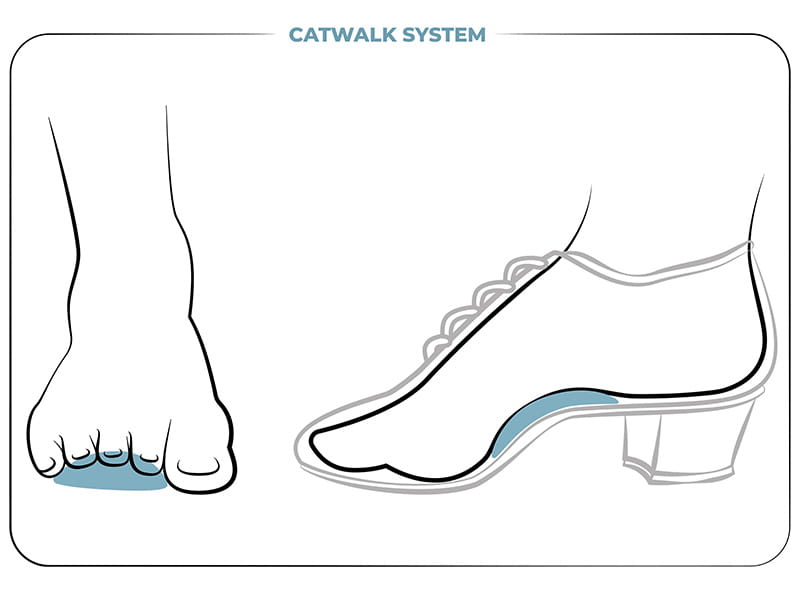 ✔ CATWALK System – anatomically contoured insole supports the entire foot, including areas affected by transverse flatfoot, minimizing fatigue and strain.