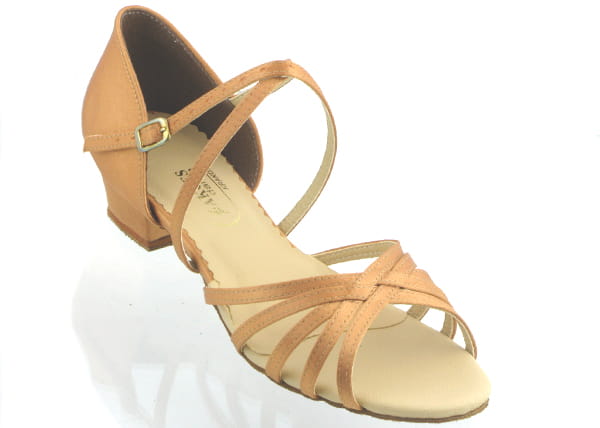 Elegant and comfortable dance shoes for girls, designed for Latin and ballroom dancing. Crafted from high-quality dark nude satin, they offer a subtle, classic look that complements any dance outfit.
