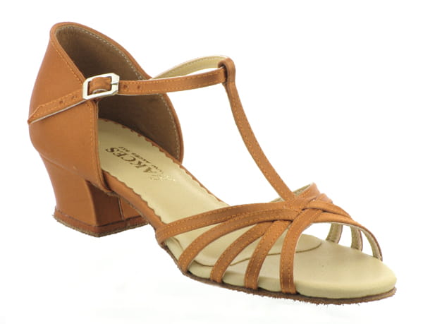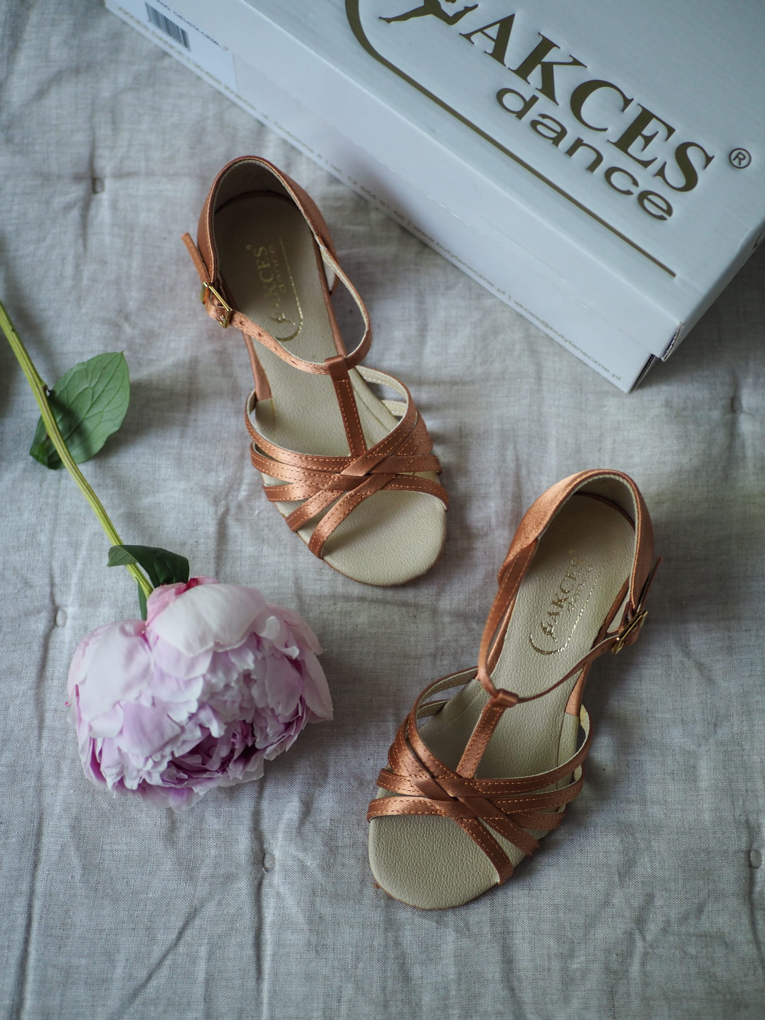 Elegant and comfortable dance shoes for girls, designed for Latin and ballroom dancing. Made from high-quality dark nude satin, they offer a subtle, classic look that complements any dance outfit.