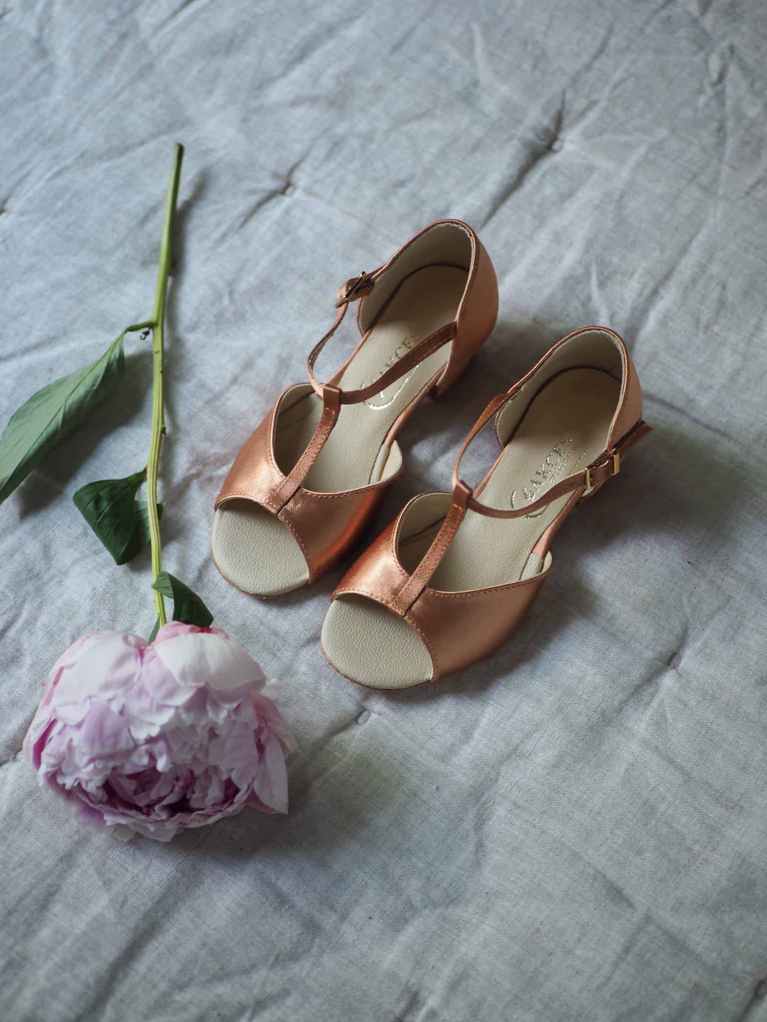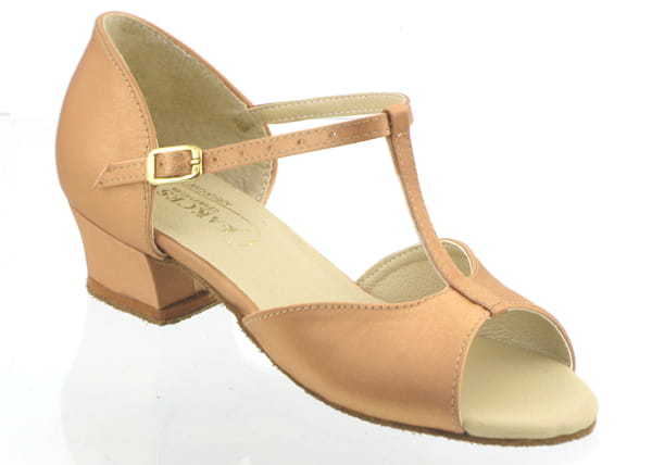 Elegant and comfortable dance shoes for girls, specially designed for Latin and ballroom dancing. Made from high-quality dark nude satin, they offer a subtle, classic look that perfectly complements any dance outfit.